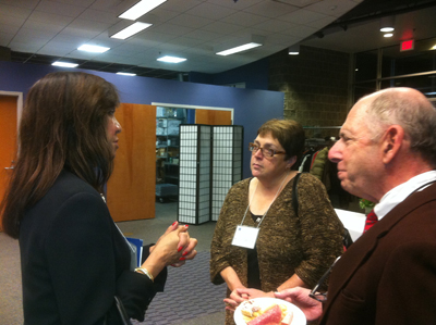 Director of the UMass Cranberry Station Caroline Demoranville, with Marty Starr, Science Advisor to the Cranberry Institute, and Chancellor Grossman
