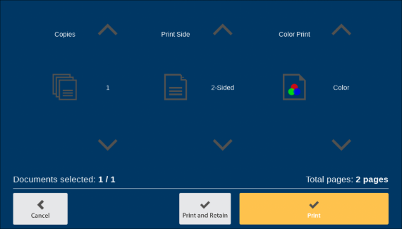 Tap the Print and Retain button to print the selected item, and keep it in your jobs list until the 48-hour period expires. CITS strongly recommends this option, as it makes it easier to reprint if there is a problem.