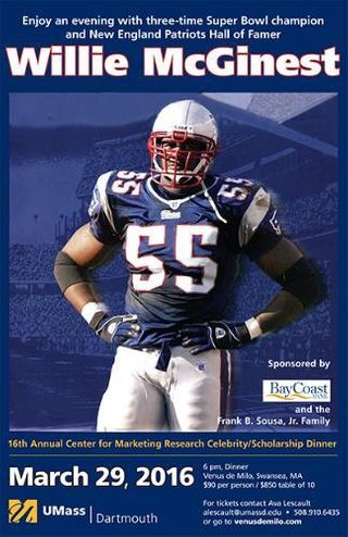 McGinest will be sharing some of his personal story as well as some special Patriot’s related highlights.