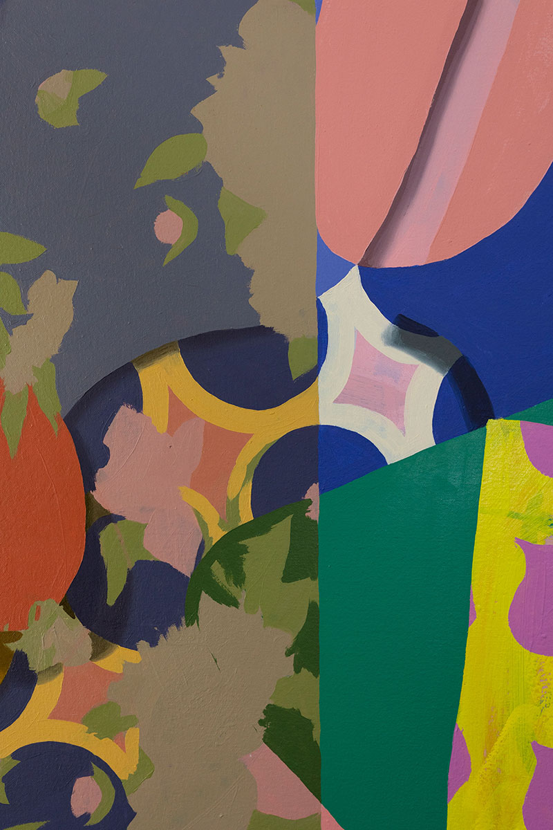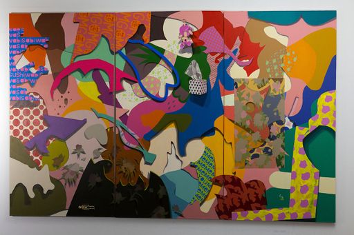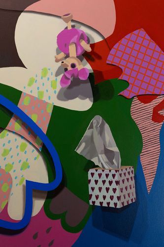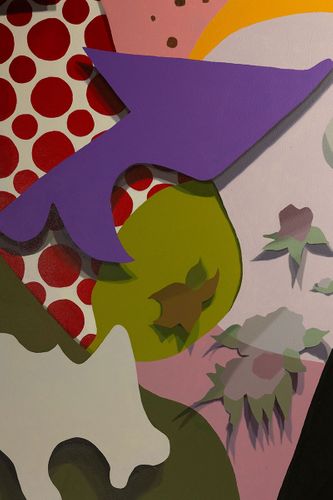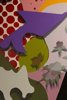 My work is drawn from the painstaking scrutiny of models I create from cheap objects, fabrics, wood, etc. I find lying around in my studio. Often, brightly colored abstract shapes, patterns, and words represent the chaos of relentless information bombarding our everyday lives. A cacophony of colors, shapes, and visual puns reflect my perceptions on our discordant world.