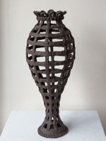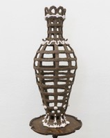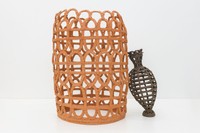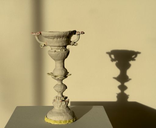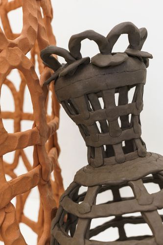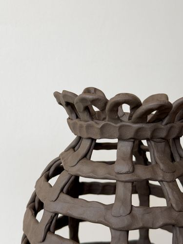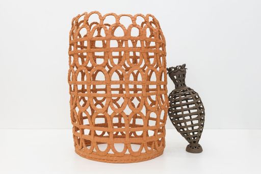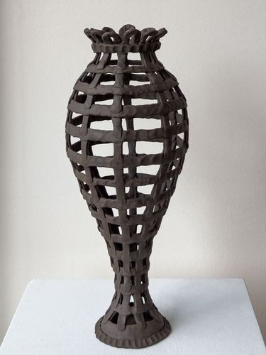 By organizing individual-built ceramic objects and utilizing the familiar and unfamiliar, I create a physical dialogue of hybrid environments. Coiling, pinching, and piping become a form of embodied ritual, tactile processes that document and physicalize time. Utilizing these meticulous, repetitive processes, accumulation and layering become a vehicle for translating my inner world into tangible objects. I employ a visual language of lattices, grids, and screens to create and reimagine functional objects. Using negative space, color, the organic tilt of the object, and the overt intention of a drip, I further highlight a coexistence of dualities between seen/unseen and interior/exterior. The juxtaposition of distorted elements within familiar settings prompts reconsidering what is known. My work emerges as a tangible reflection of the unseen inner forces that shape our physical and emotional landscapes, encouraging myself and viewers to make space for the unknown.