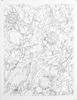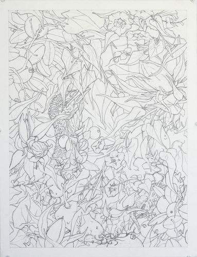 I work in several mediums, including painting, drawing, and printmaking. However, the methods I use in creating my compositions remain consistent across them. I add, subtract, overlap, and interweave subjects until I reach a balanced composition of visual complexity. I create my images like puzzles with subjects that need time to find their way through. In this process of creating and decontextualizing them, I transform these subjects from just being animals, plants, or fungi, into something more. This invites the viewer to reconsider them and use their own lexicon to create an individual understanding of the work. Through this experience, I hope to remind the viewer to stop, slow down, and really look at the world around us.