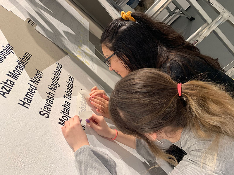 Through this exhibition, participating students have the opportunity to hone their skills in all aspects of curation and exhibition design: from handling precious artwork to installing vinyl lettering and from label writing to selecting color themes for the gallery walls. Additionally, they are required to deliver short presentations on the thematic sections of this exhibition, including the Shahnameh [the Book of Kings], medieval manuscripts, Qajar Iran, the 1953 Coup, the 1979 revolution, censorship and many more.