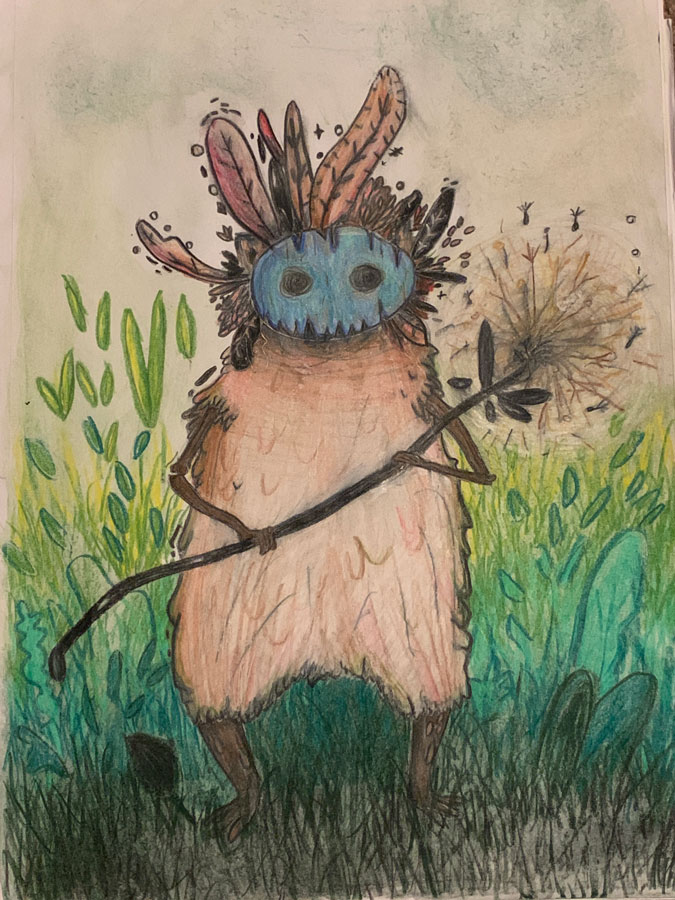 Test Day, 2022, colored pencil, charcoal, printed digital art, 8.5 x 11 in.