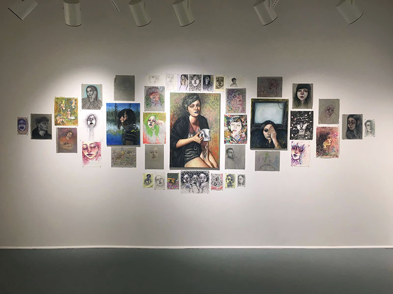 Works by two Master of Fine Arts graduate painting students in the College of Visual and Performing Arts, Alex Landy and Shabnam Jannesari.