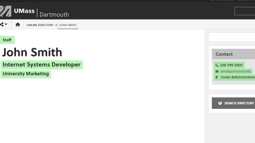Once you have a profile in the university online directory, use the Custom Profile Request form to add additional specialized information to your University profile. Highlighted in the illustration, we define custom profile information as: