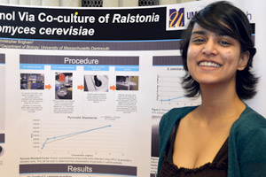 Part of the first UMassD class to graduate with a major in bioengineering, Shravani Kakarla researched biofuel and bio-manufacturing.