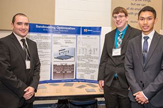 Students determined that a static electricity charge created by sandblasting caused the blasting grit to cling to the product in the machine, thus causing process problems later and also causing an unsafe working condition for employees. They selected, installed, and configured a system to eliminate the static charges, thus solving the problem.