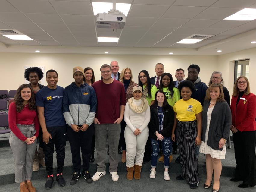 On Thursday, December 6, 2018, the UMass Dartmouth Leduc Center for Civic Engagement celebrated 20 years of America Reads/Counts tutoring program that has sent student tutors into the SouthCoast community. To commemorate the anniversary, university officials, legislators, and community partners gathered at the YMCA’s in New Bedford and Fall River to witness the impact of tutoring.