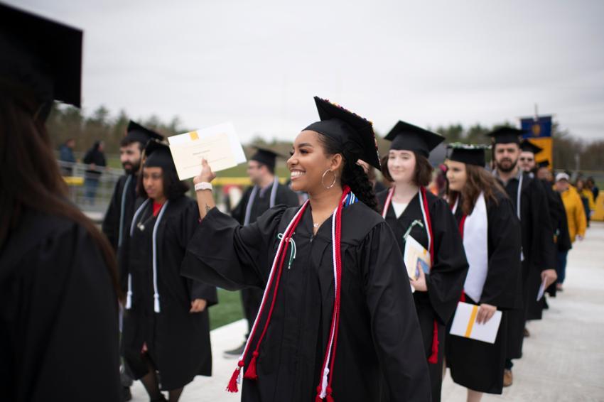 The graduate student speaker was Kebeh Sando (Clinical Psychology), who immigrated to the United States from West Africa during the Liberian Civil War and earned her master’s in psychology. Sando shared with her peers the power of second chances: “I stand here representing all of us. All who have struggled but kept the faith. All who wanted to give up but persevered. All who imagined receiving a degree but saw life get in the way. Fellow graduates, we all represent each other, and we are all now a part of the UMass Dartmouth family forever. Through faith, hard work, and perseverance we earned ourselves countless second chances!”