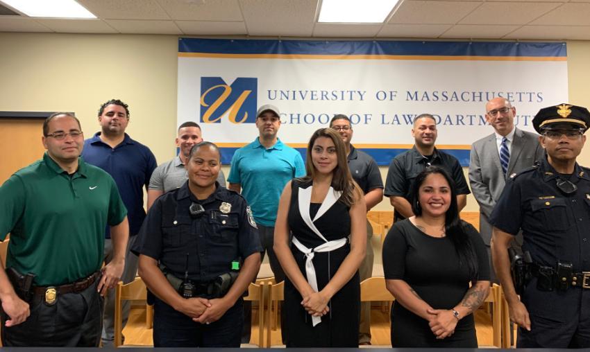 In an effort to give back to their community while creating career opportunities in the legal professions, Hispanic members of the New Bedford Police Department have begun a scholarship at UMass Law. On September 24, Banessa Gonzalez, a third-year UMass Law student, became the inaugural recipient of the Hispanic Police Officers of New Bedford Scholarship.