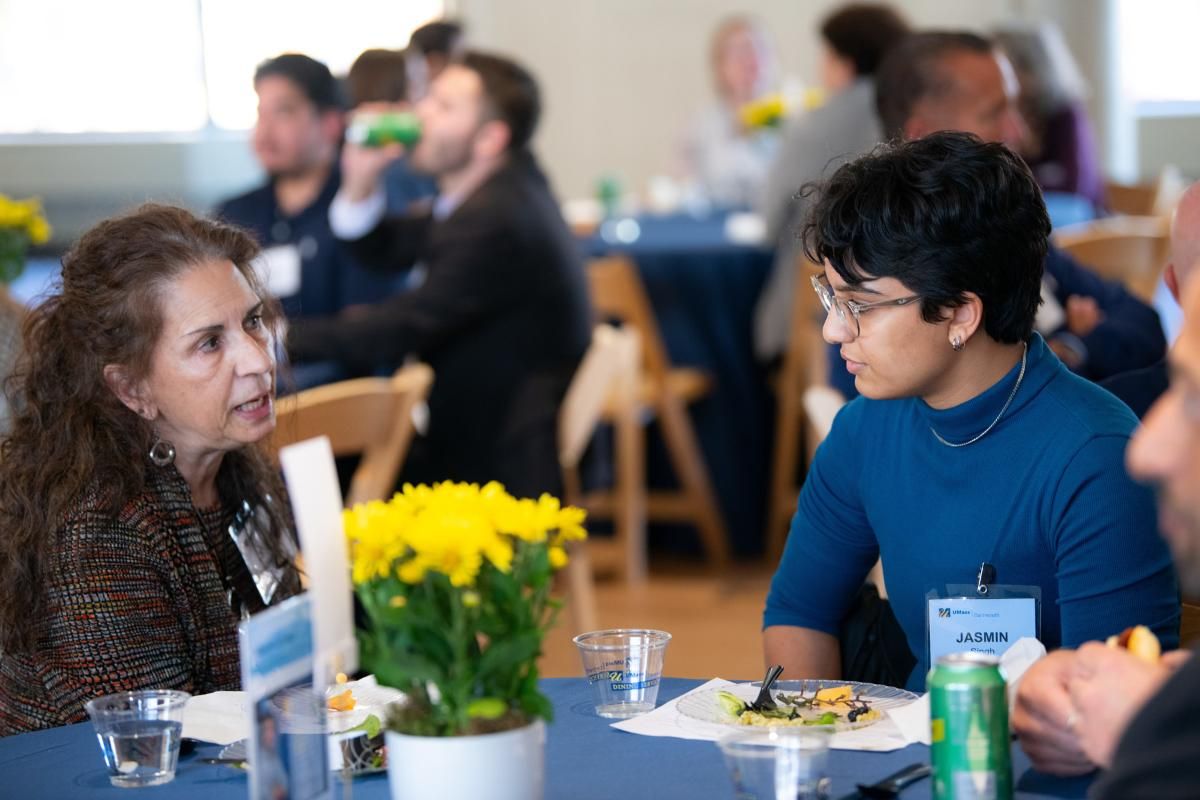 “I’ve attended this event before, and it’s always such a pleasure to interact with the students and learn what they’re passionate about. Maybe I can provide them with assistance in some way,” said Mary Louise Nunes ’83, a member of the UMass Dartmouth Foundation Board. “My table had some really interesting discussions, and some of us even gave business cards to students in hopes they’ll reach out for an internship. I hope they were able to take some knowledge away from this experience.”