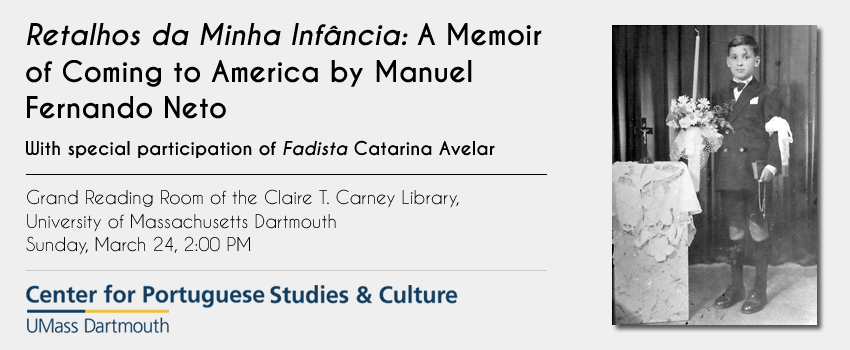 The event, which is free and open to the public, will take place at 2:00 PM on Sunday, March 24, in the Grand Reading Room of the Claire T. Carney Library (Parking Lot 14), and will include refreshments and a performance by local fadista Catarina Avelar.