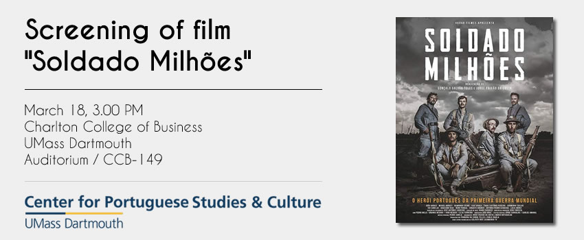 Screening of film Soldado Milhões, Q&A with actor Ivo Canelas at UMassD, in collaboration with the Consulate of Portugal in New Bedford and the Arte Institute NY